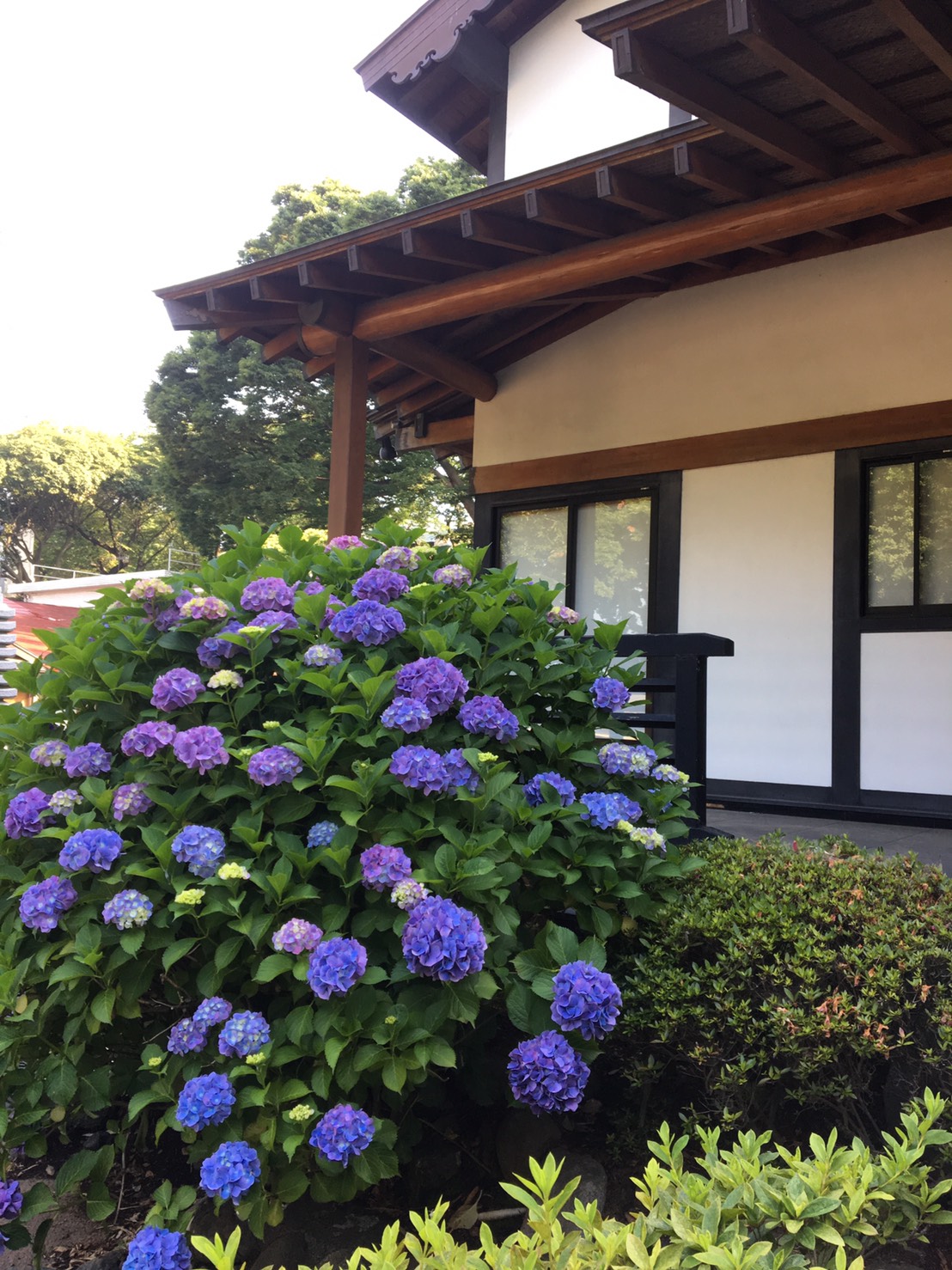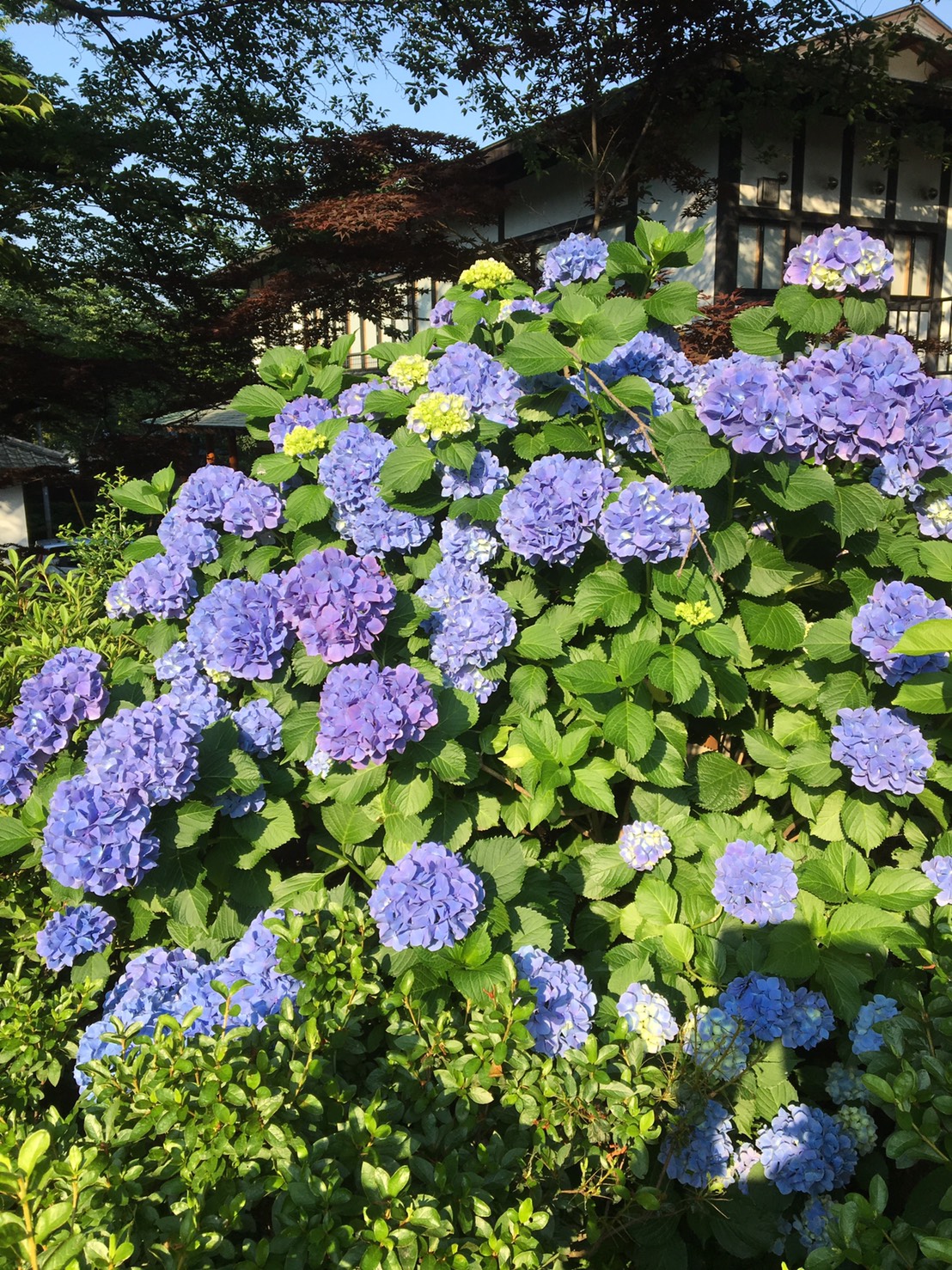 お寺の紫陽花は白、紫、ピンク、青と色とりどりにきれいに咲いてます。