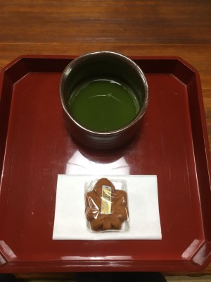 本日は、季節柄、秋ということでもみじ饅頭を用意しました。お抹茶と合い、美味しく戴きました。