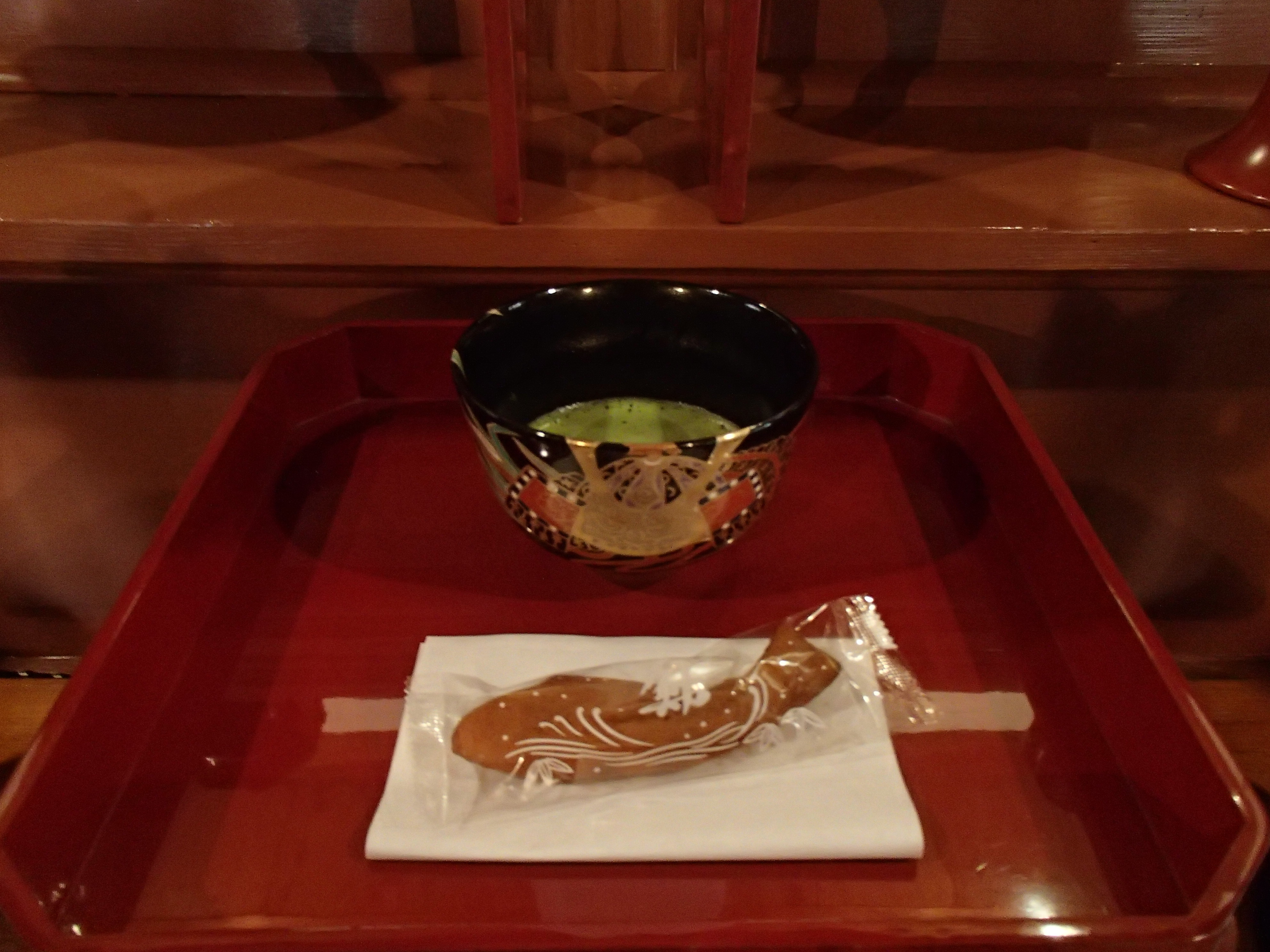 坐禅会の前日が、端午の節句でしたので、今回のお抹茶の器は兜の絵があり、和菓子は鯉の代わりに若鮎の形をした和菓子を用意しました。