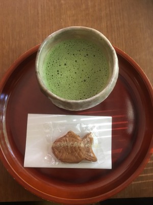 5月5日は子供の日でした。鯉のぼりにちなみ、魚の形をした和菓子を用意しました。お抹茶と美味しくいただきました。