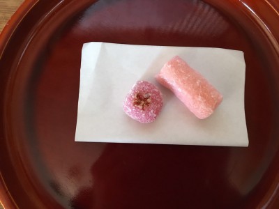 今月の和菓子は、桜饅頭と桃の麩菓子です。季節の移り変わりを感じながら参禅者の皆さんと美味しくいただきました。