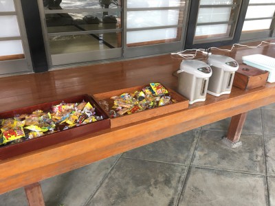 今年も本堂前に花御堂を設置しました。日曜日という事もあり、お参りの方が多く、たくさんの方に誕生佛に甘茶を掛けてお祝いをしていただきました。また、一休みしてもらうために本堂の縁側に甘茶、お菓子を用意しました。
