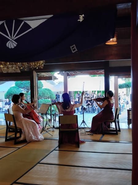 弦楽の調べが境内に穏やかに響き渡り、深く色づき始めた木々の中で、心静まるひとときを過ごすことができました。
