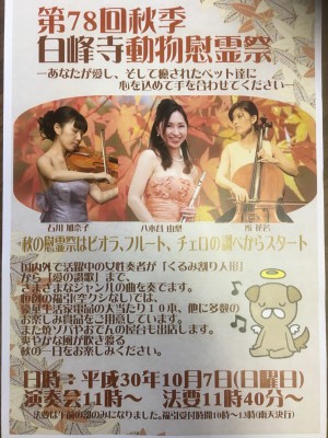平成30年10月7日(日)に秋季白峰寺動物慰霊祭を開催いたします。